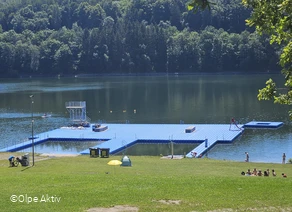 Direkt am Staudamm bietet das Café "Leuchtturm" eine Einkehrmöglichkeit. Nun geht es weiter entlang des Westufers zum Listerdamm. Die Staumauer trennt die Wassermassen von Bigge- und Listertalsperre voneinander. Weiter geht es um den Sonderner Kopf, wo ebenfalls ein Strandbad zur kleinen Erfrischung einlädt. In Eichhagen überquert man den Biggesee und es geht zurück zum Ausgangspunkt in Olpe.