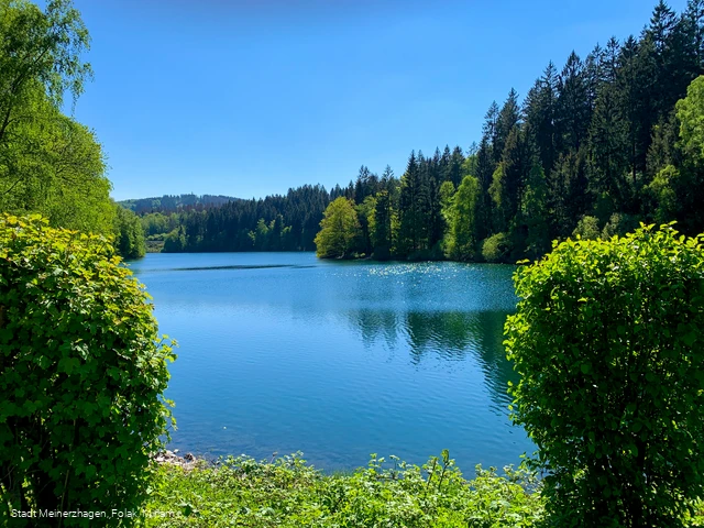 We start our hike at the hiking parking lot at the entrance portal to the Sauerland-Höhenflug long-distance hiking trail (Schallershaus) in Meinerzhagen and hike towards the Meinhardusschanzen ski jump facility. A few meters away is the source of the Agger, which flows into the Sieg after 69 km between Siegburg and Troisdorf. Follow the Sauerland-Höhenflug (white H on a yellow background) for approx. 500 m and then leave it to the right. It goes slightly downhill, you cross the Sauerland-Höhenflug again and come to a wider path. Turn right here and then right again 300 m further on. Once again, we reach the Sauerland-Höhenflug hiking trail, on which we now continue along the babbling brook to Badinghagen Castle. The romantic half-timbered Wasserschloß, which was first mentioned in a document in 1160, is now in private use and can therefore only be viewed from the outside. We then turn right and Wenden left at the next opportunity. We now walk along the right-hand side of the large pond and walk a short distance alongside the L323. Then cross the road and continue along the slightly ascending path until you reach the wide alder path. Follow this to the left for 200 m and then continue along a narrow path, from where you can enjoy wonderful views over meadows and forests as far as the Agger valley. Shortly before the village of Helberg, we meet up with the Erlenweg again and turn right from it in a north-westerly direction. The route now climbs through varied sections of forest to the refuge at Harkenstiel. Here you have completed about half of the hike and can treat yourself to a leisurely rest at the hut. Then head downhill through picturesque beech forest and follow the Dreslerweg trail to the left. 200 m further on, turn right and you can already see the water surface of the Genkeltalsperre dam on your left. The water body is a pure drinking water reservoir, which is mainly fed by the Genkel and Grotmicke rivers. We continue along the dam and follow the left-hand bend of the path. Then turn right three times and gradually leave the Genkeltalsperre behind you. We follow the path past lush Weide pastures into the Grotmicke valley. At the gauging station, keep left and continue along the course of the stream and through meadows towards Heed. The Heed guest house is located in this small district of Meinerzhagen. The forest and environmental education center is a former Friends of Nature house that accommodates 36 beds and also serves as a conference and seminar venue. You can also sample homemade cakes and coffee here on Sundays and public holidays between 2 and 4 pm and by appointment. After we have fortified ourselves, we continue walking and keep to the left. Cross the L323, walk a short distance to the right along the country road and turn right at the next fork in the road. We follow the path out of the forest and can soon see the Meinhardusschanzen on the right. At the Schützenplatz, turn right and continue along the L306n for a short distance, which leads back to the starting point.