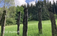 Volg de borden in zuidoostelijke richting. U ziet rechts een kleine aftakking van de Listertalsperre. Het pad is hier gemarkeerd met een grote D. Na ongeveer 300 meter passeer je een informatiebord met een kaart, die je een indruk geeft van de route. De meeste werkzaamheden bevinden zich in dit lager gelegen deel, want hier is het project in 2007 begonnen. Bekijk de omgeving met een zoekend oog, want er zijn niet alleen grote objecten, maar ook hele kleine en verborgen objecten.Ga rechtdoor, sla na ongeveer een kilometer scherp rechtsaf en loop bergopwaarts. Kijk uit voor de "metgezellen" die je begeleiden. Na ongeveer 100 meter scherp linksaf en na ongeveer 30 meter meteen weer Die Linke. Je bent nu op de A1. Je passeert de "Waldgarderobe" en de "Baumschule". Na de boomkwekerij houd je rechts aan en ga je verder omhoog. Op de top wordt u beloond met een fantastisch uitzicht. Je kunt nu even uitrusten bij het "Zyklus"-werk, want vanaf nu gaat het bijna helemaal bergafwaarts.Loop langs de bergkam. Neem bij de volgende splitsing het pad Die Linke. Ga bij het gedenkkruis scherp rechtsaf. Kijk om je heen, want je wordt hier in de gaten gehouden. Ga verder langs de A3/4. Bij het "Gabi-One, Two,Three" werk kun je nog een pauze nemen en van een prachtig uitzicht genieten. Blijf dan op de heuvelrug. Houd Die Linke aan bij de volgende splitsing. Je passeert de objecten "Aus der Reihe" en "Der Gehörnte". Blijf op het pad en ga verder bergafwaarts.Nadat je de "Wellness" bent gepasseerd, houd je links aan en kom je weer bij de snelweg, die je ook naar Die Linke volgt. Na ongeveer 300 meter ben je terug bij de parkeerplaats. De totale lengte van de "KuLTour" is ongeveer 7 kilometer.